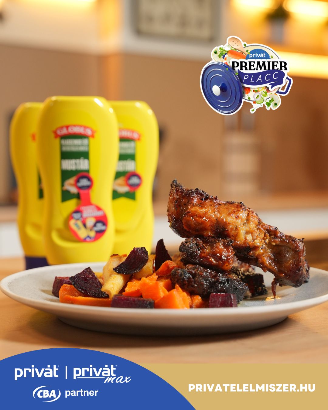 Mézes–mustáros oldalas sült zöldségekkel – A Globus mustár kívül megújult, belül pedig hozza a jól ismert, klasszikus ízét! Hozzávalók:-1 kg oldalas-2 ek Globus mustár-2 ek méz-4 gerezd fokhagyma-só, bors, szerecsendió,